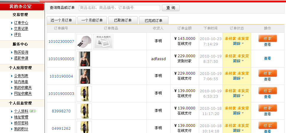 歡迎頁 用戶信息 我的訂單 收貨地址 我的收藏 我的留言 跟蹤訂單 資金管理 您的賬戶 退出 |