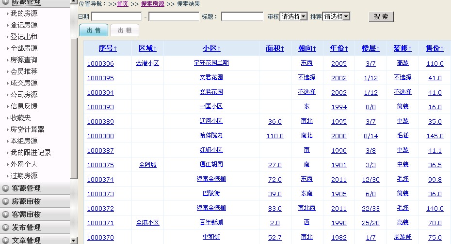 2.1 客源信息 登記求租求購(gòu)客源信息,包括客戶基本資料、需求情況、交易類型、委托方式、歸屬經(jīng)紀(jì)人、加密客公開客等。