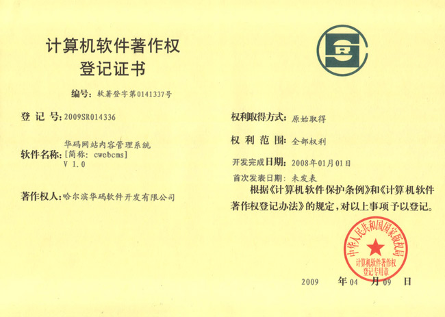 national copyright certificate about Chinese customer relationship management system and web content management systems