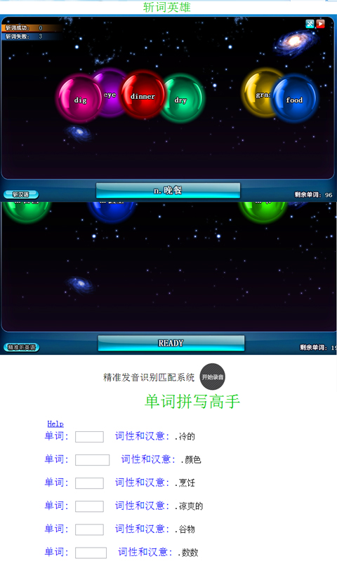 二 斬詞英雄—運(yùn)用全球最先進(jìn)技術(shù)制作的跨平臺(tái)背詞游戲。根本停不下來的一分鐘測試20個(gè)單詞的趣味游戲。